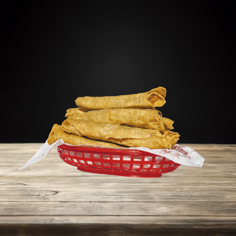 Flauta en tortilla de maíz con pollo, 1 pza. 5 flautas: 1 bote,