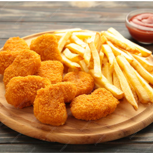 10 piezas de nuggets de pollo + porción de 120g de papas a la francesa y catsup