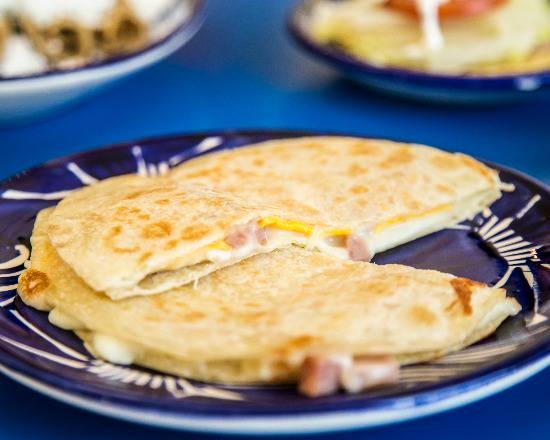 1 pza Sándwich Formado por 2 tortillas de harina Rellenas de queso mozzarella Fundido Jamón de pavo y queso americano