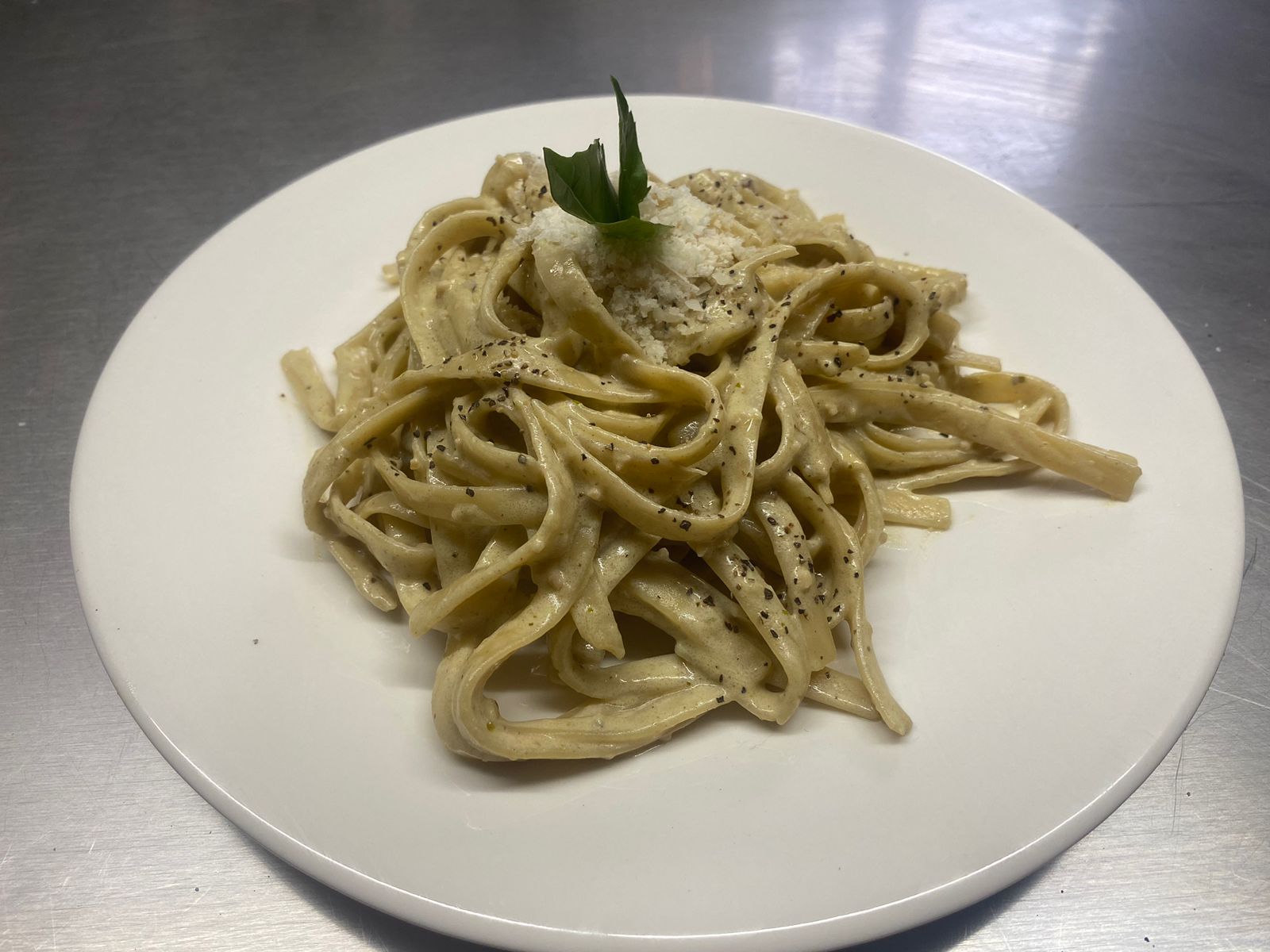 Mantequilla, parmesano, leche evaporada, cebolla, ajo, albahaca fresca y mix de especias.