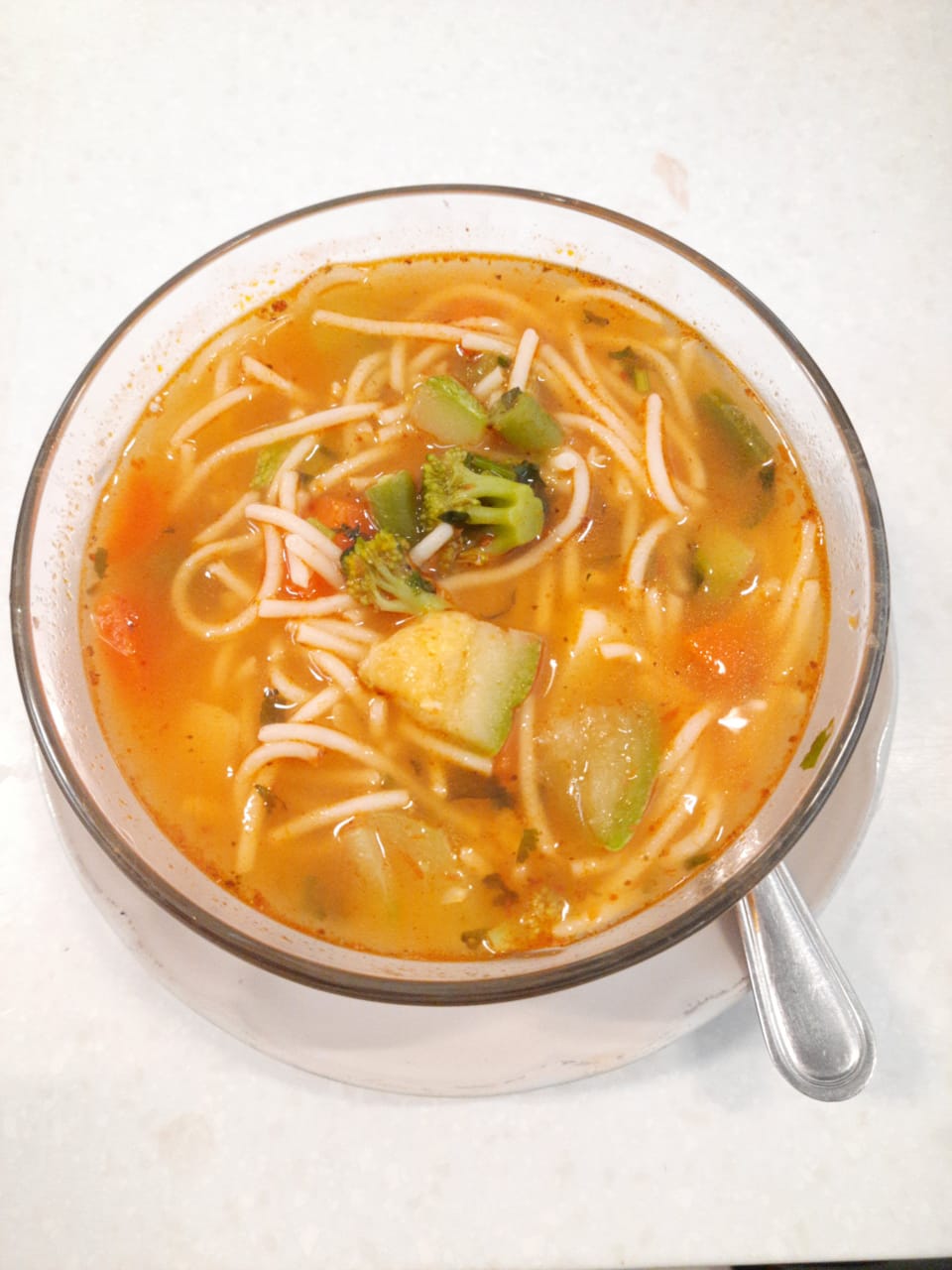Sopa caldosa con verduras y pasta alrededor contiene un litro.