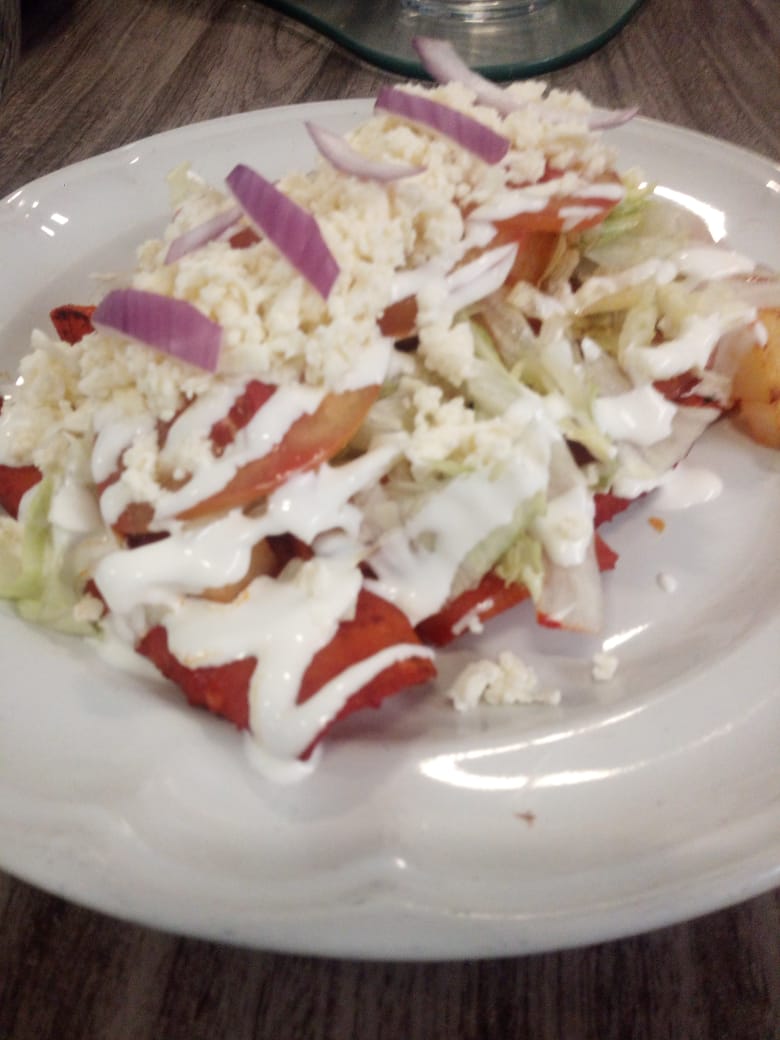 Son rellenas de res o de pollo acompañadas con su ensalada de lechuga, cebolla, jitomate, crema y queso.