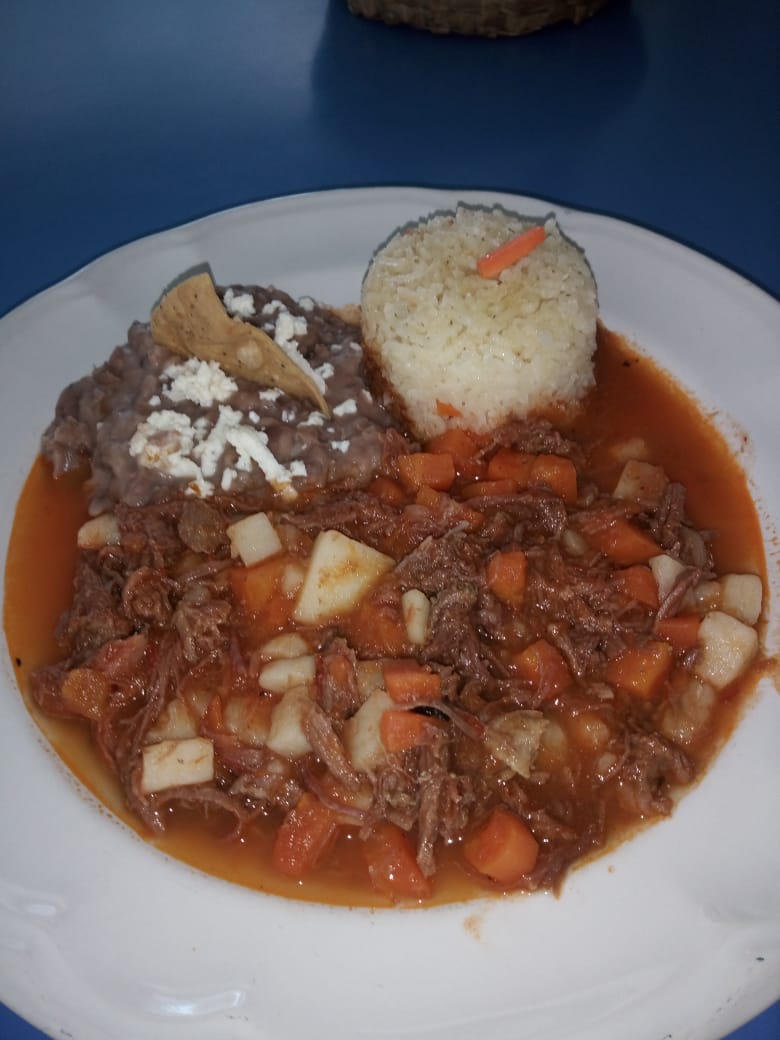Chambarete, pico de gallo tortillas limón salsa arroz contiene un litro.