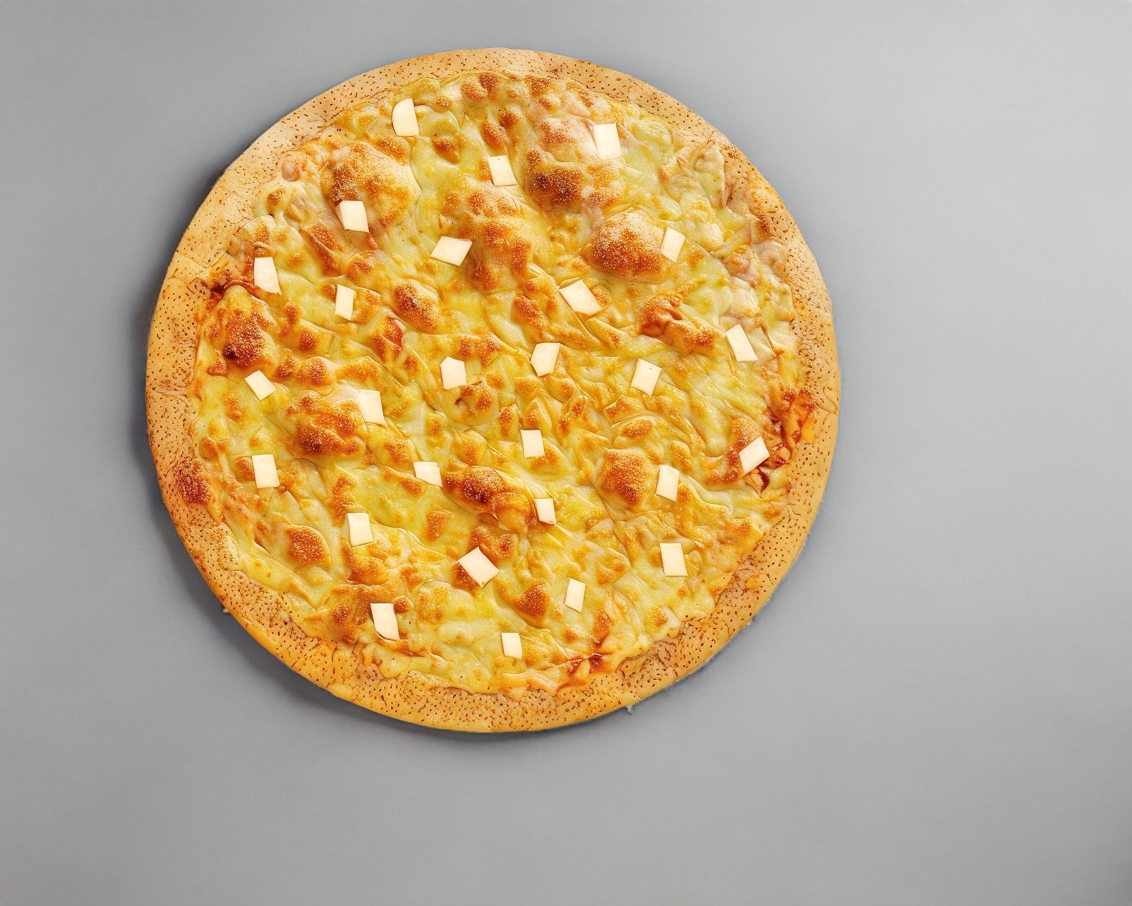 Deliciosa pizza con salsa italiana, queso mozzarella y queso crema.
