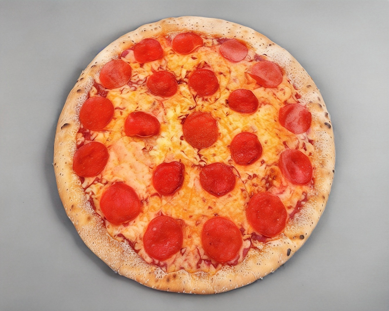 Deliciosa pizza con salsa italiana, queso mozzarella y pepperoni.