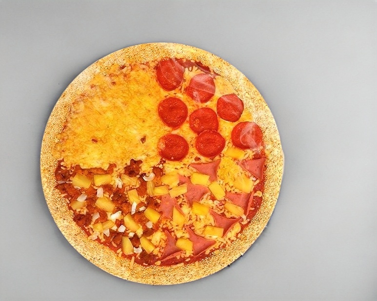 Deliciosa pizza (8 rebanadas, tamaño grande 35 cm)con salsa italiana, queso mozzarella mitad hawaiana y mitad pepperoni.