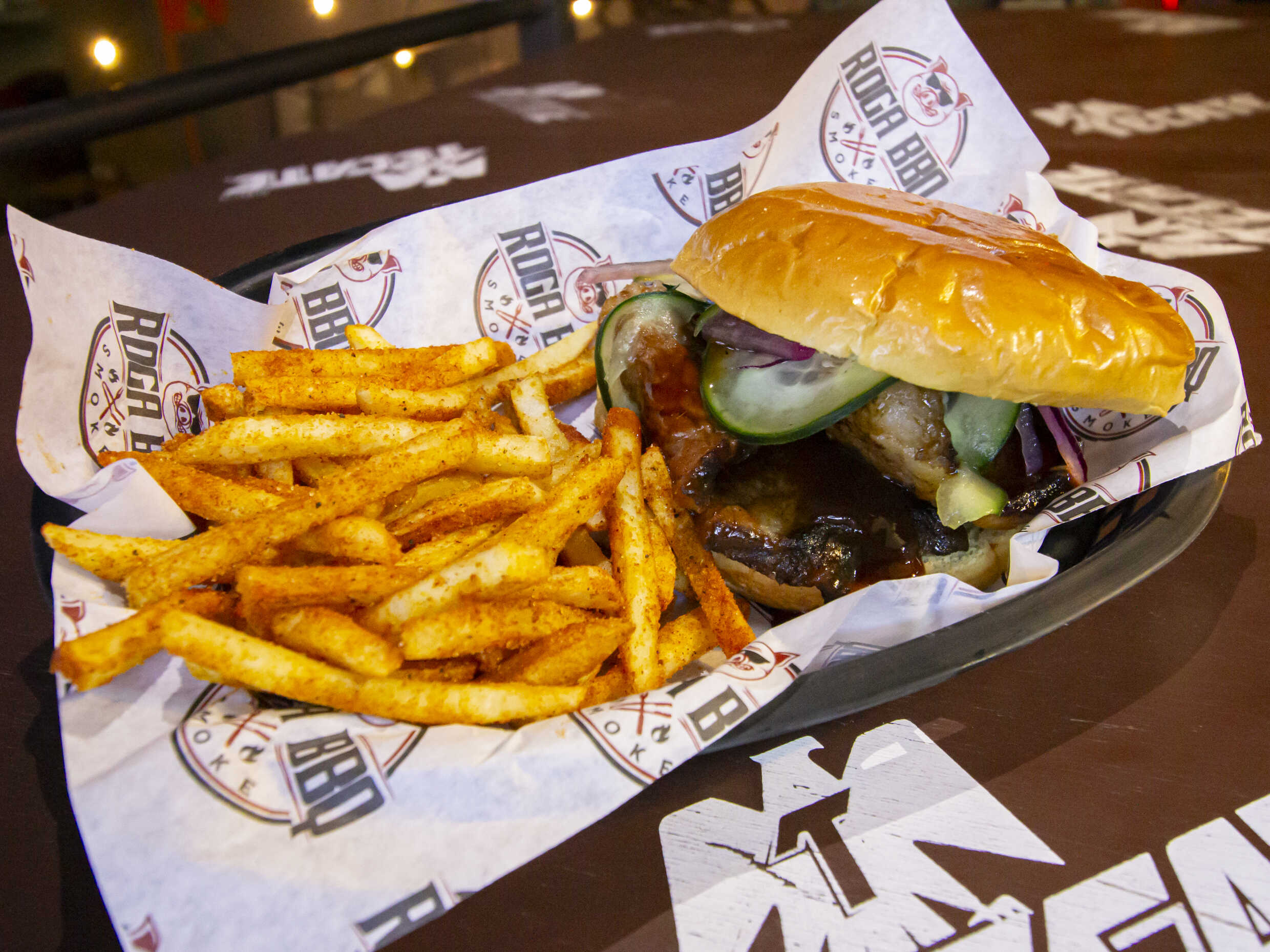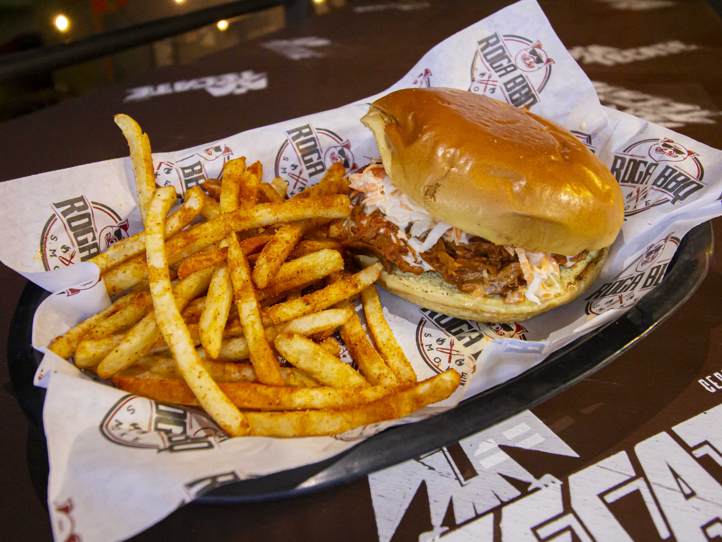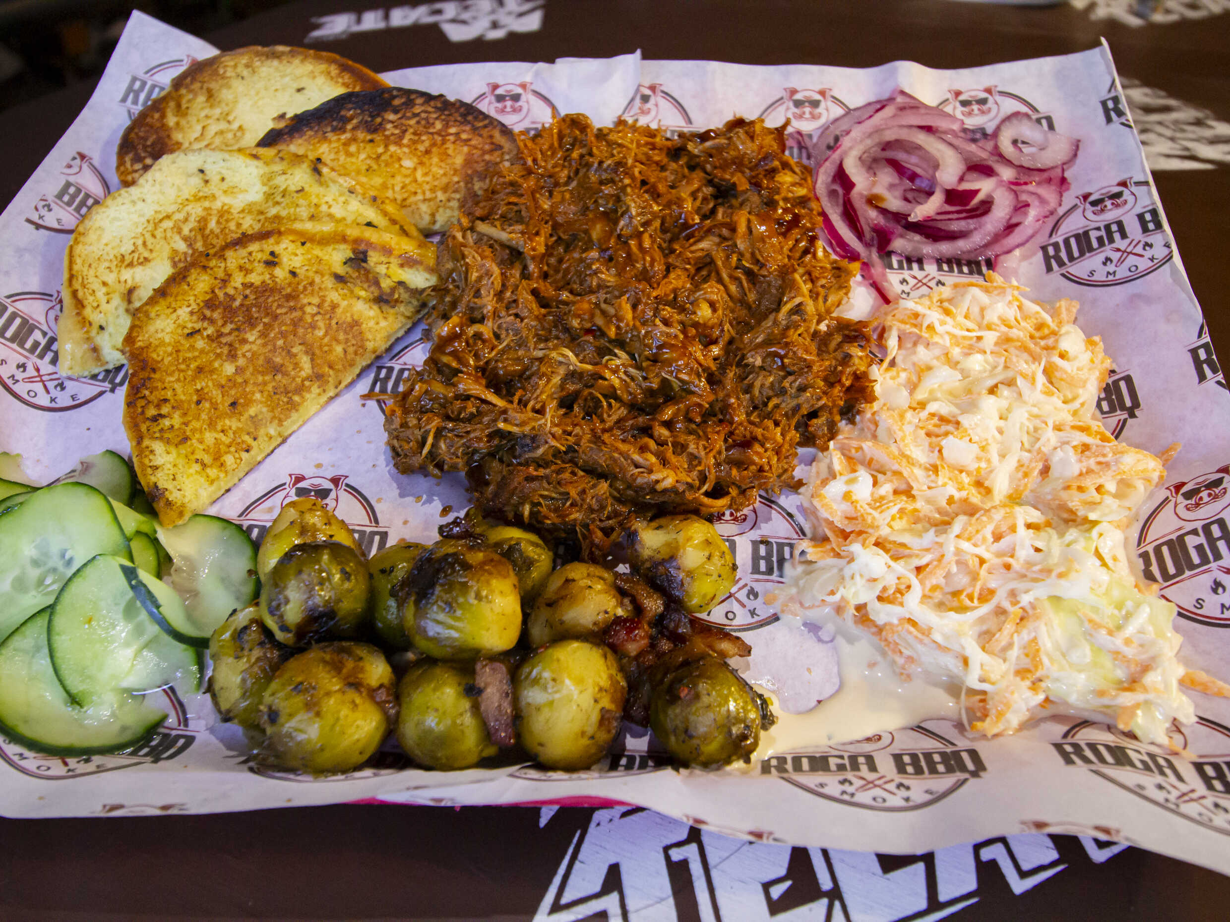 400 grs de cerdo ahumado deshebrado con 2 complementos a elegir.