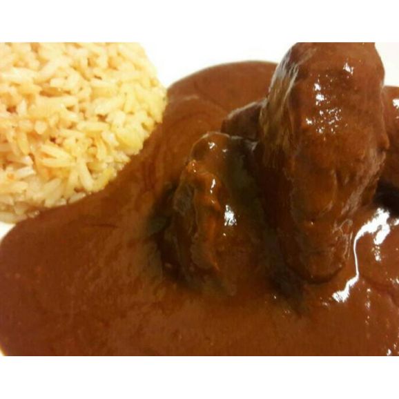 Mole de la casa 100% casero con una pz de pollo (pierna, muslo o pechuga) acompañado de 1 guarnición y 3 pzs de tortilla