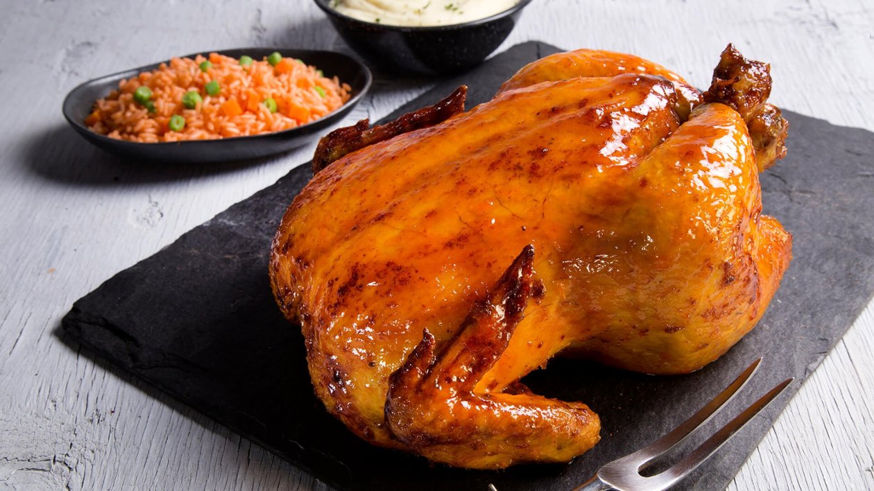Incluye:. 1 pollo grande, 1 pollo mediano y 3 complementos a elegir