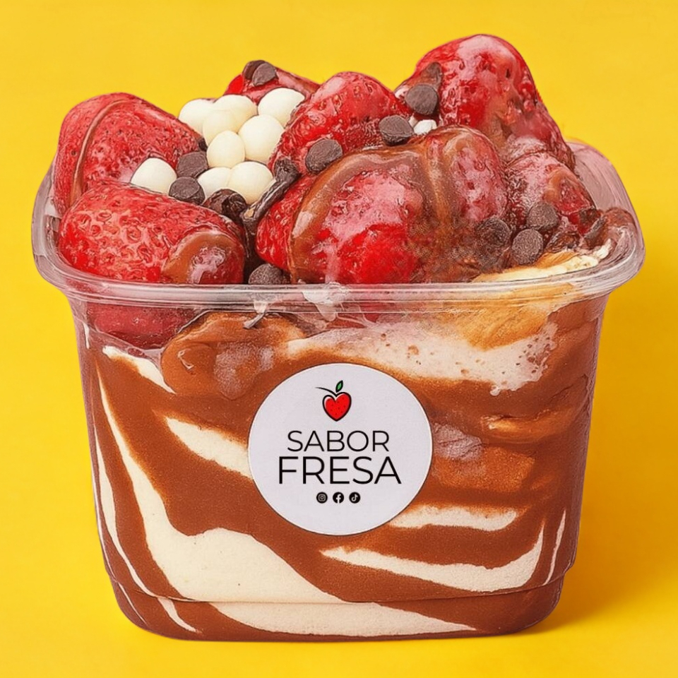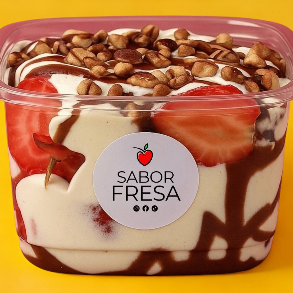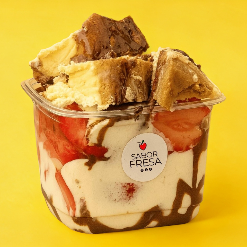 LITRO DE FRESAS CON CREMA, INCLUIYE CHEESCAKE Y TOPPING