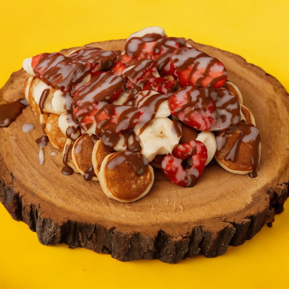 ORDEN DE MINI HOTCAKES ACOMPAÑADO DE FRESAS,PLATANO,TOPPING Y UNTABLES