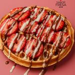 WAFFLE A COMPAÑADO DE FRESAS,PLATANO, TOPPING Y UNTABLES