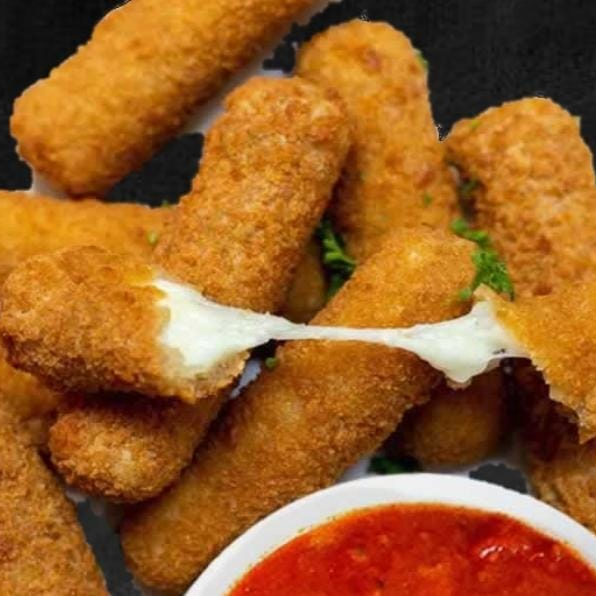 6 piezas de palitos empanizados rellenos de queso mozzarella