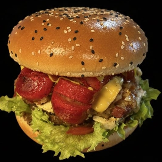 Carne de res 160gr, Tocino, Salchichón, Queso amarillo, Lechuga, Jitomate, Cebolla