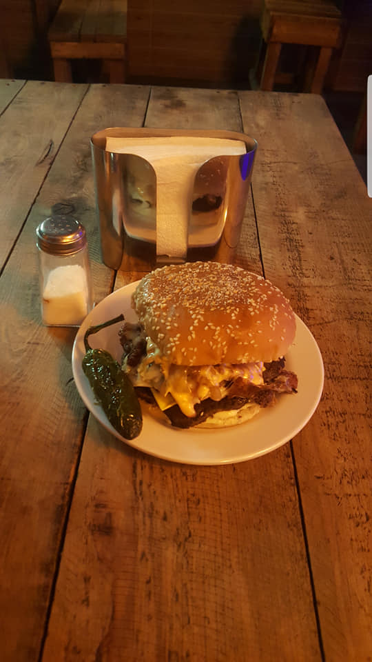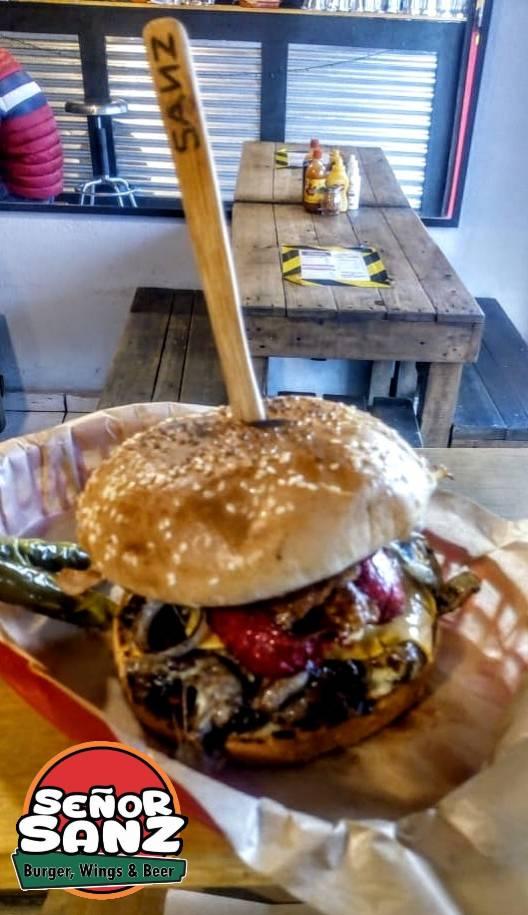 Carne de Sirloin (150gr), queso mozzarella, queso tipo americano, cebolla asada, jitomate y delicioso aderezo de la casa con papas tipo sabritas (60gr).