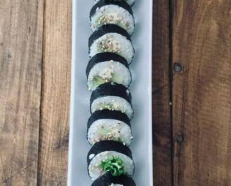 pepino, surimi, camarón , shishimi, pulpo, alga, soya, vinagre de arroz.
