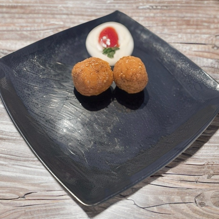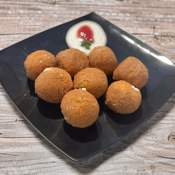 Queso manchego, camarón con queso y plátano con champiñón. Orden con 4 piezas.