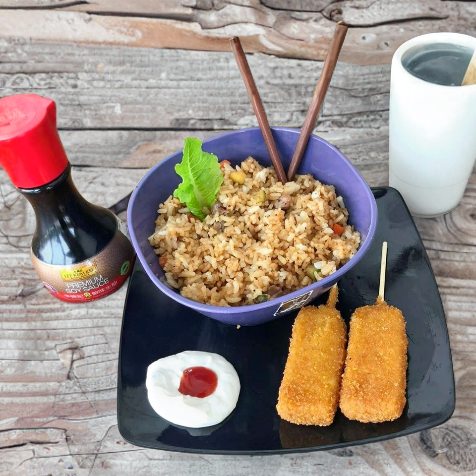 Arroz Frito Mixto*6 + Pieza Dedo de Queso Manchego*12 + Charola de 6 Makis*1