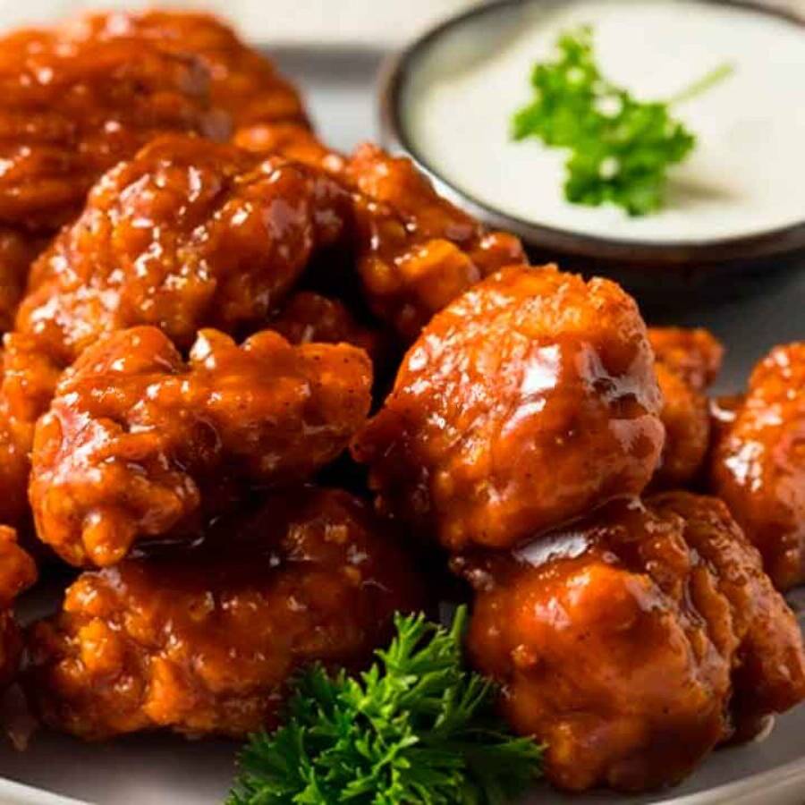 Crujientes por fuera, suaves y jugosos por dentro, bañados en 1 sabor de salsa e incluye 1 ranch de 1 onza.