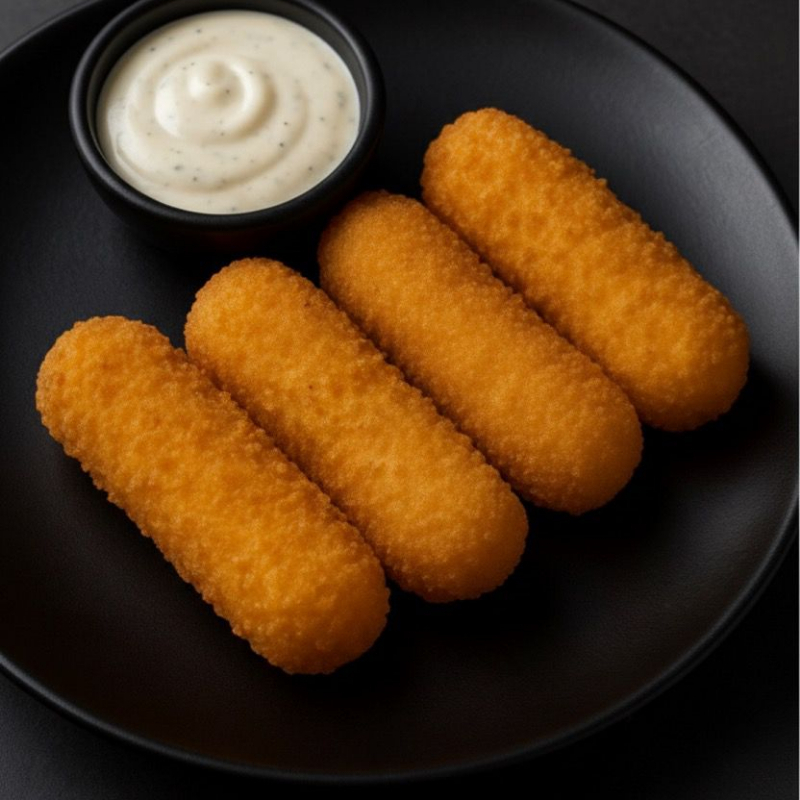 Orden chica, aprox. 4 pzas de crujientes dedos de queso. No incluye salsas, elige tus salsas extra para acompañar.