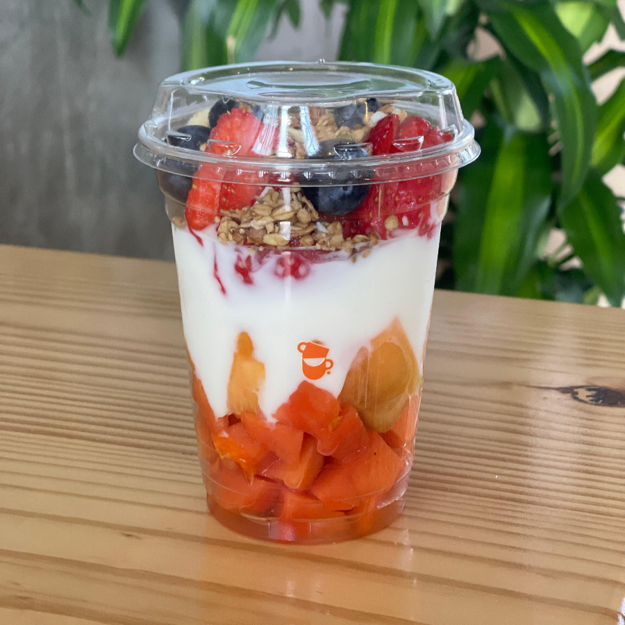 FRUTA DE TEMPORADA, CON YOGURT Y GRANOLA