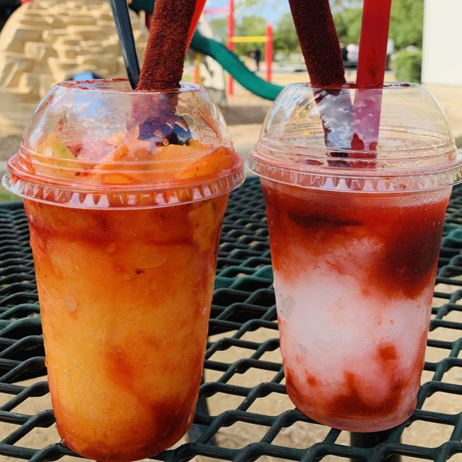 Elaborados a base de hielo, fruta natural congelada, chamoy, miguelito a elegir