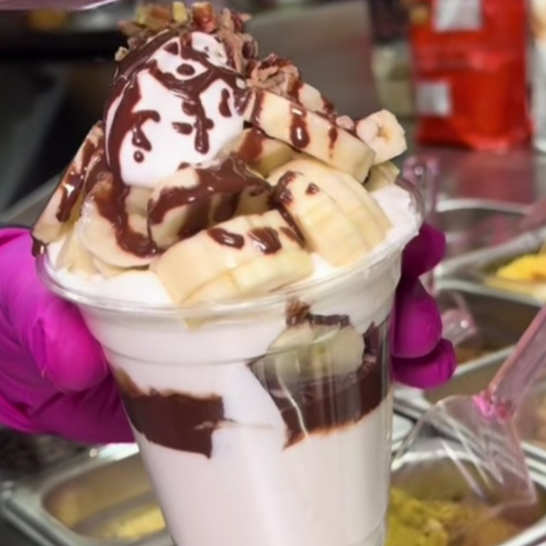Platano Trozeado, Crema Preparada de la casa, Toppings a elegir