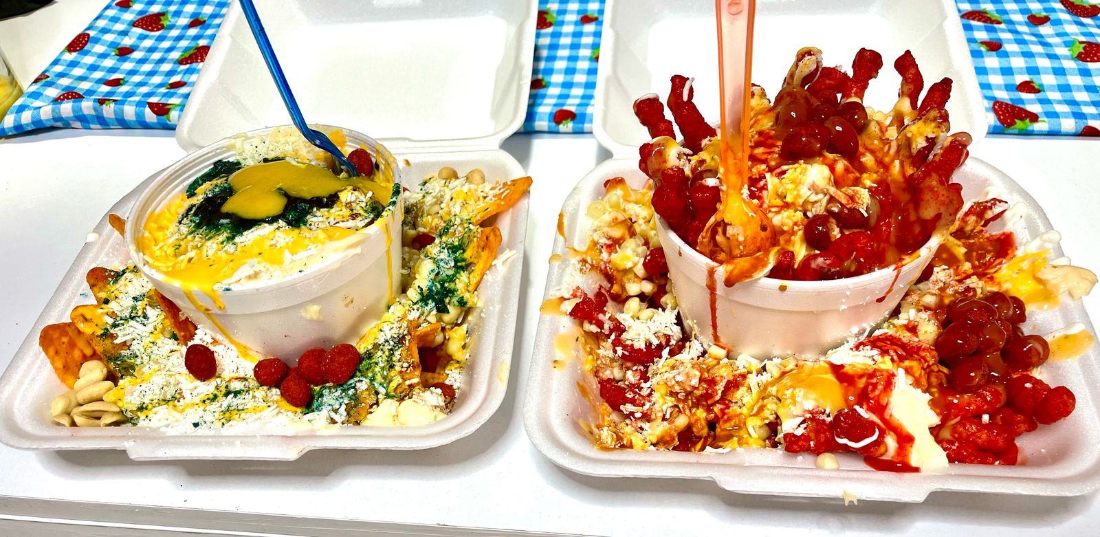 Elegir maruchan y provi, elote desgranado, mayonesa, crema, queso blanco, queso amarillo, chile y limón.