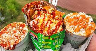 Sabritas a tu elección, elote desgranado, mayonesa, crema, queso blanco, queso amarillo, chile y limón.