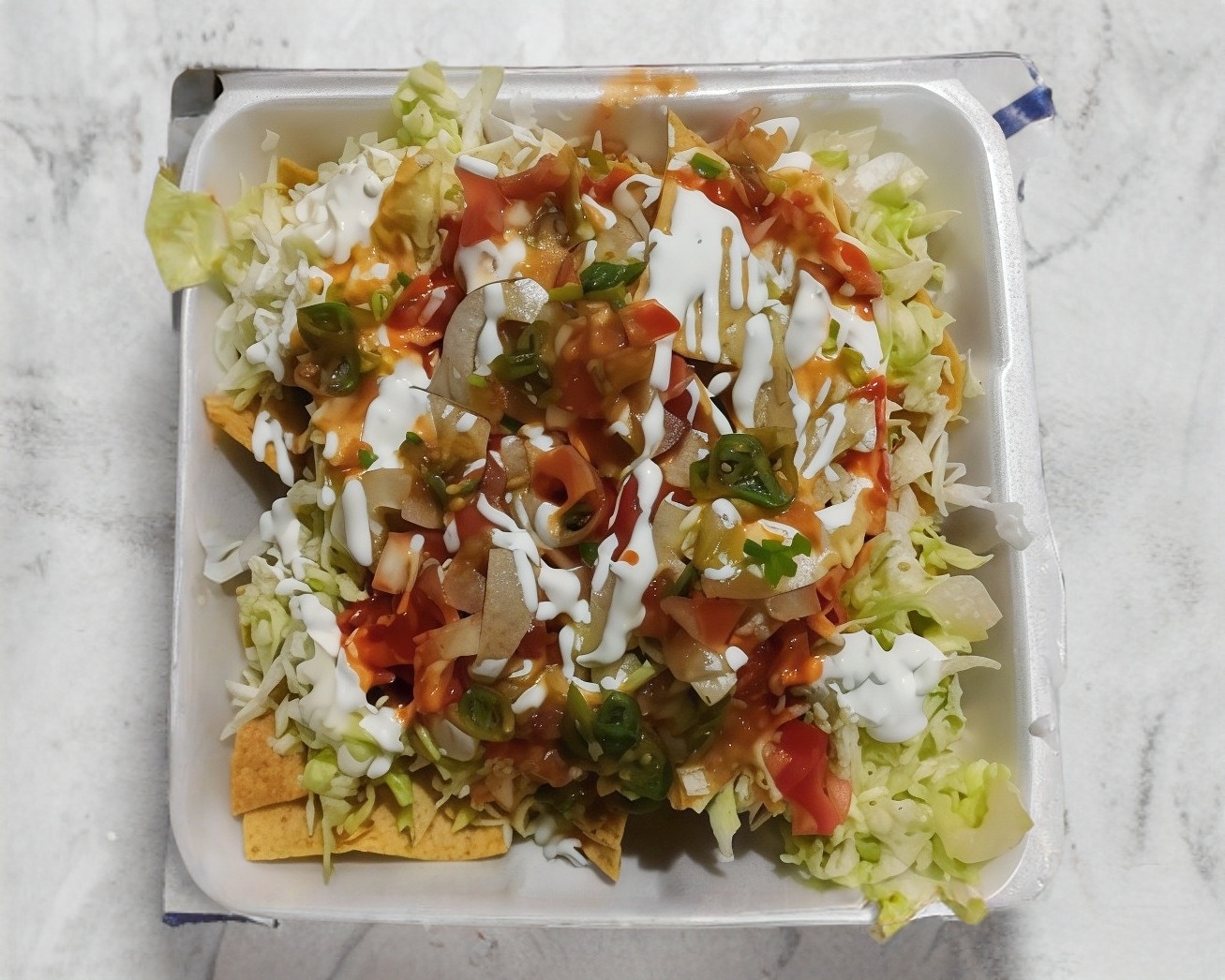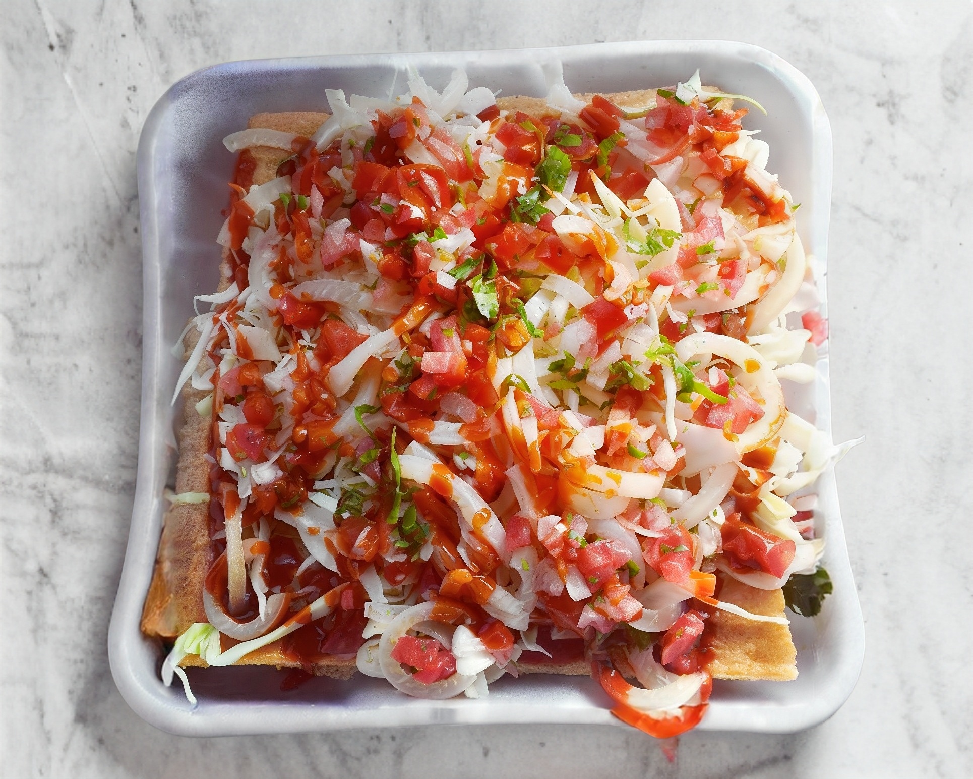 TOTOPOS, REPOLLO, CUERITOS, PICO DE GALLO, CREMA, SALSAS