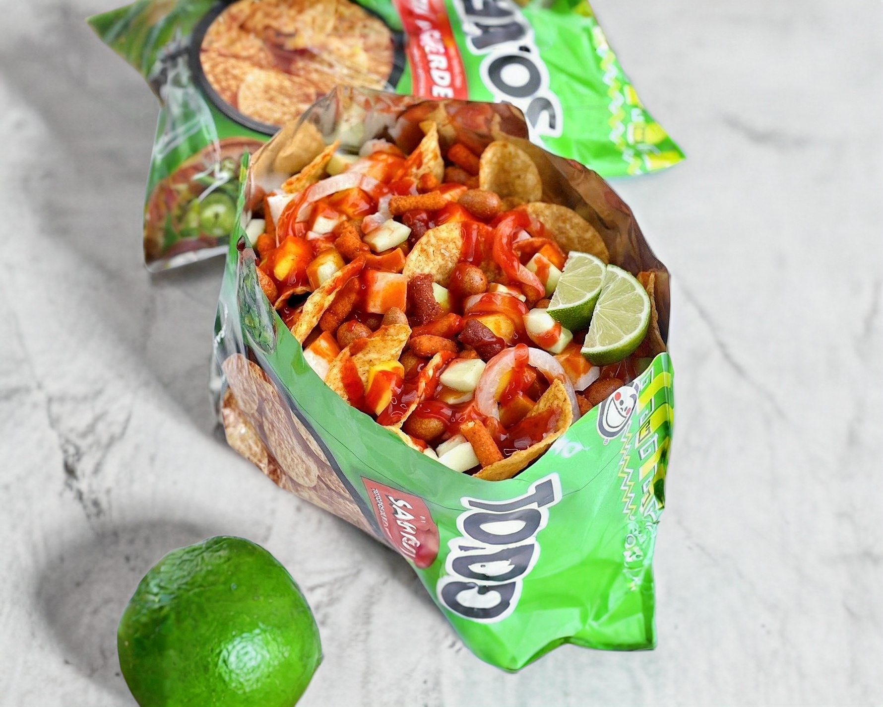 SABRITAS DE TU ELECCION, JICAMA, ZANAHORIA, PEPINO, CUERITOS, CACAHUATE ANCHILADO, CACAHUATE JAPONES, GOMITAS ENCHILADAS, CHAMOY, SALSA, Y MIGUELITO