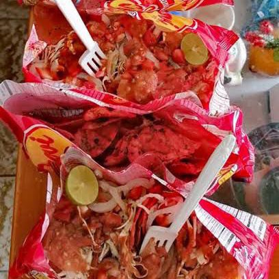 FRITURA BOLSA CHICA, REPOLLO, CUERITOS, PICO DE GALLO, CREMA, SALSAS