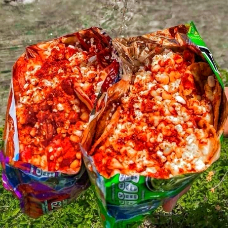 SABRITAS DE TU ELECCION, ELOTE, CREMA, MAYONESA, QUESO AMARILLO, QUESO BLANCO Y PICANTE