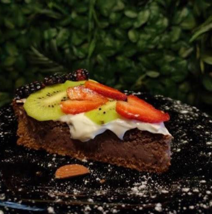 Capas de pan integral, bañadas con leche de almendras, chía y miel, acompañadas de la fruta a tu elección.