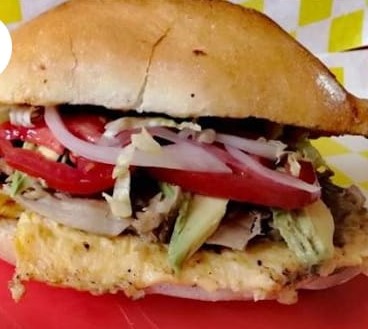 Delicioso lomo de cerdo, huevo, mayonesa, aguacate, jitomate, cebolla y lechuga.