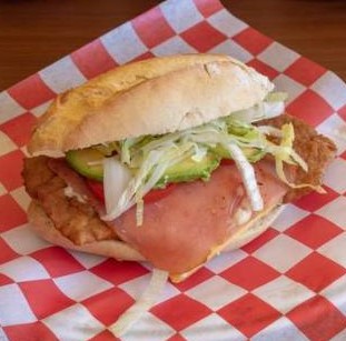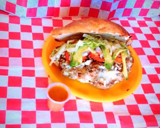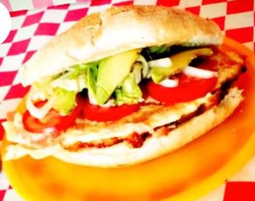 Filete de pollo frito bañado en nuestra tradicional salsa BBQ, aguacate, jitomate y cebolla.