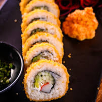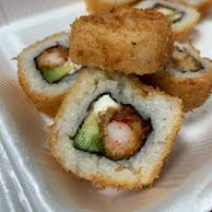 rollo frito por dentro surimi, pepino,aguacate y philadelphia
