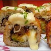 rollo frito por dentro camaron pepino aguacate cubierto de queso spicy