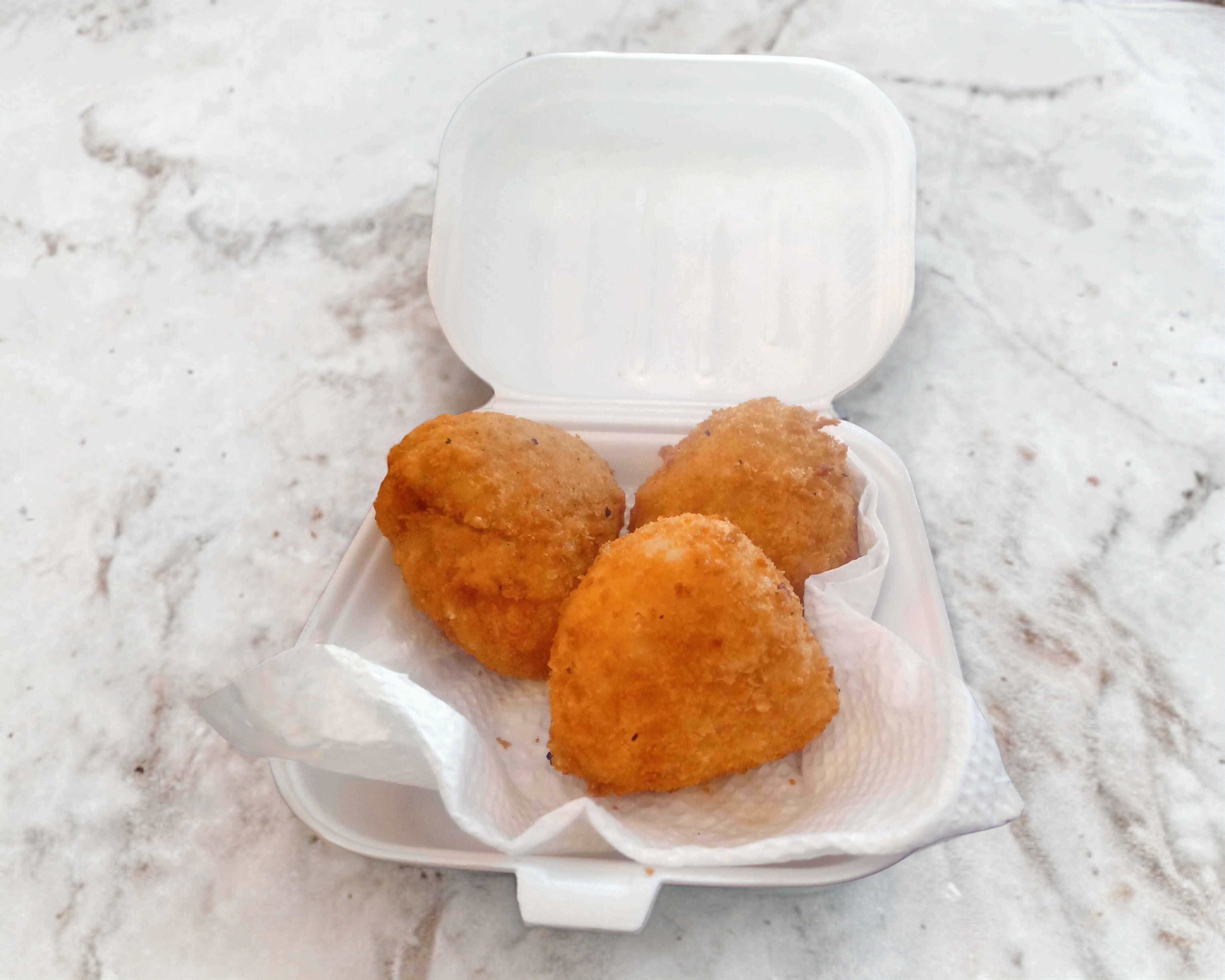 Orden de tres onigiris pequeños pueden ir rellenos de Phila/mozzarella/mousse de camarón/Tampico/atún/salmón o Ara