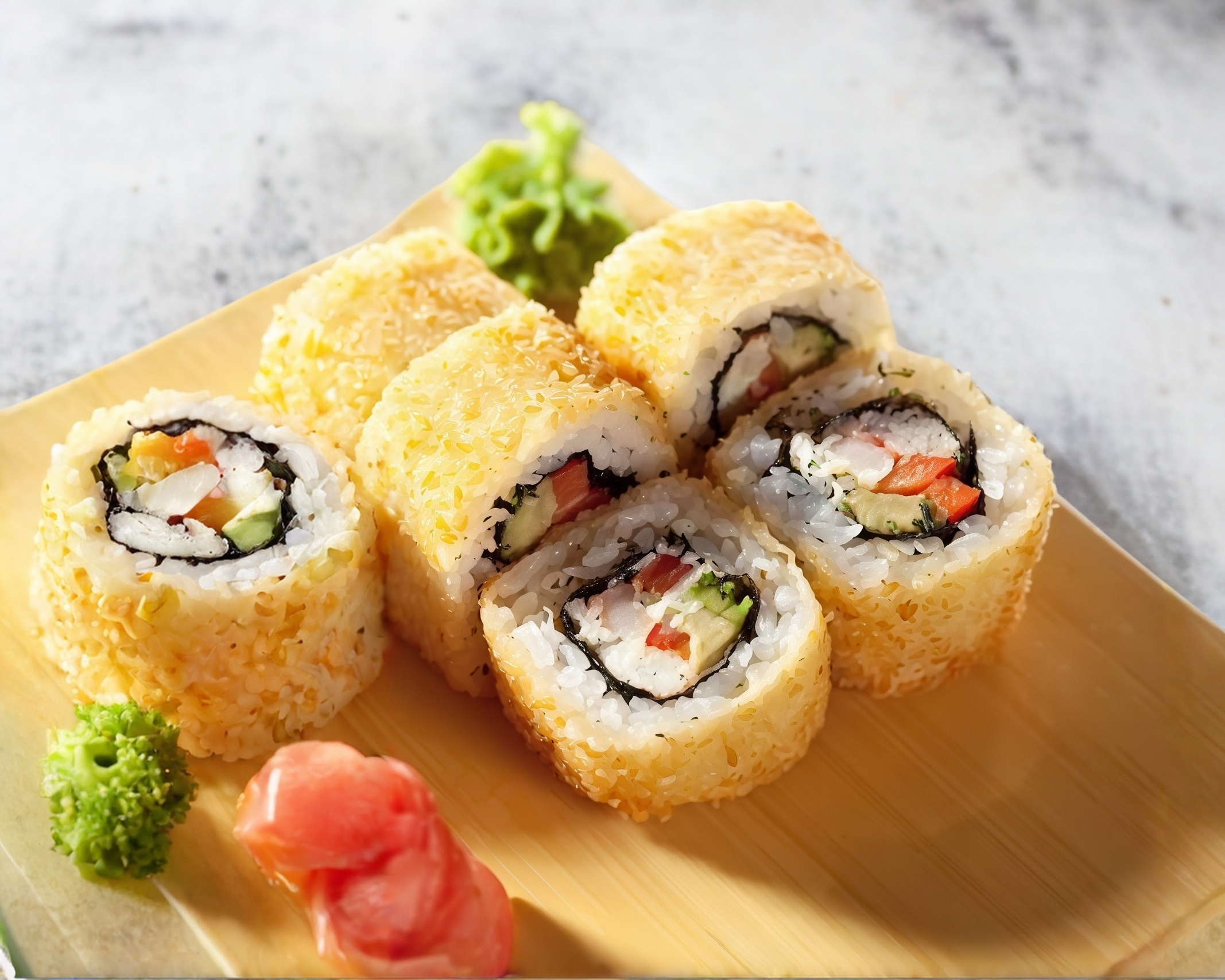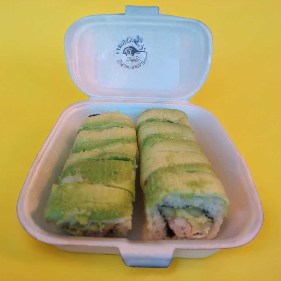 Producto individual (aproximadamente 10 bocados) por fuera queso crema y por dentro alga nori, aguacate y pepino, puede llevar camarón, cangrejo, vegetales o tampico, favor de especificar.