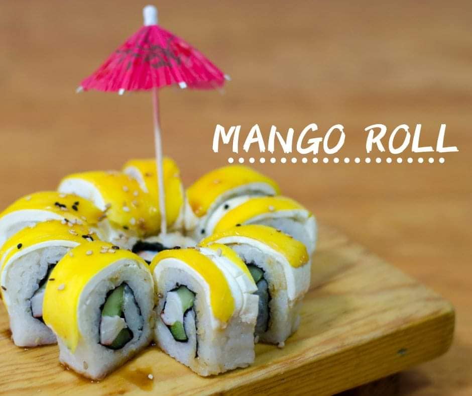 Mango natural, queso crema, pepino, surimi, y salsa de anguila.