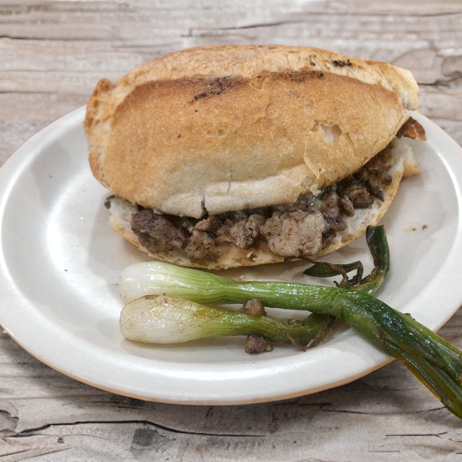 Bistec, tocino y cebolla.