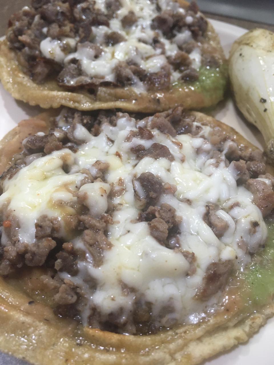Tostaditas con queso y carne a elegir.