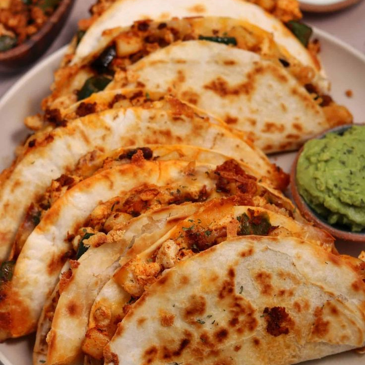 tortilla de harina doblada rellena de tu carne favorita y queso gratinado