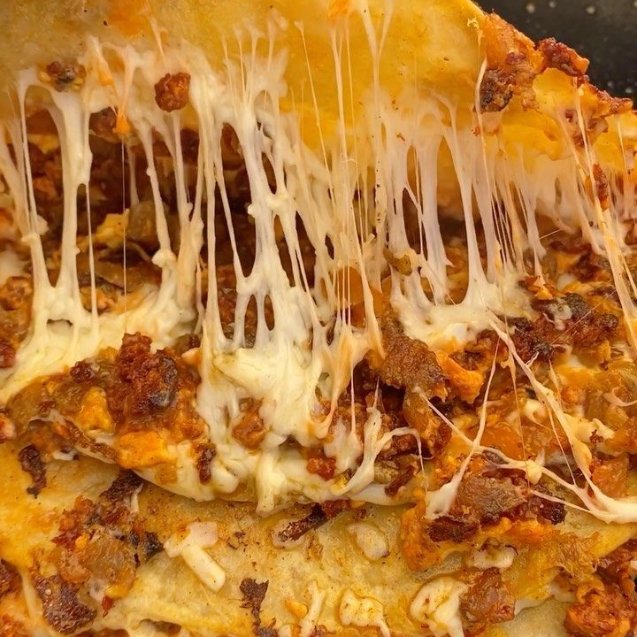 tortilla de harina doble rellena de carne con queso gratinado