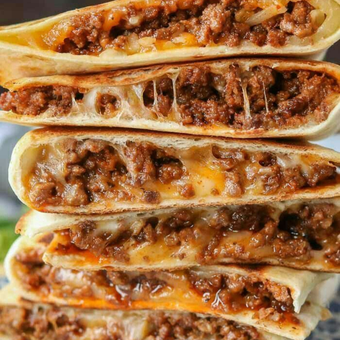 tortilla de harina doble rellena de carne y queso gratinado