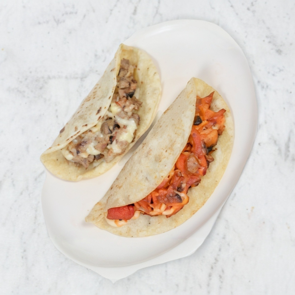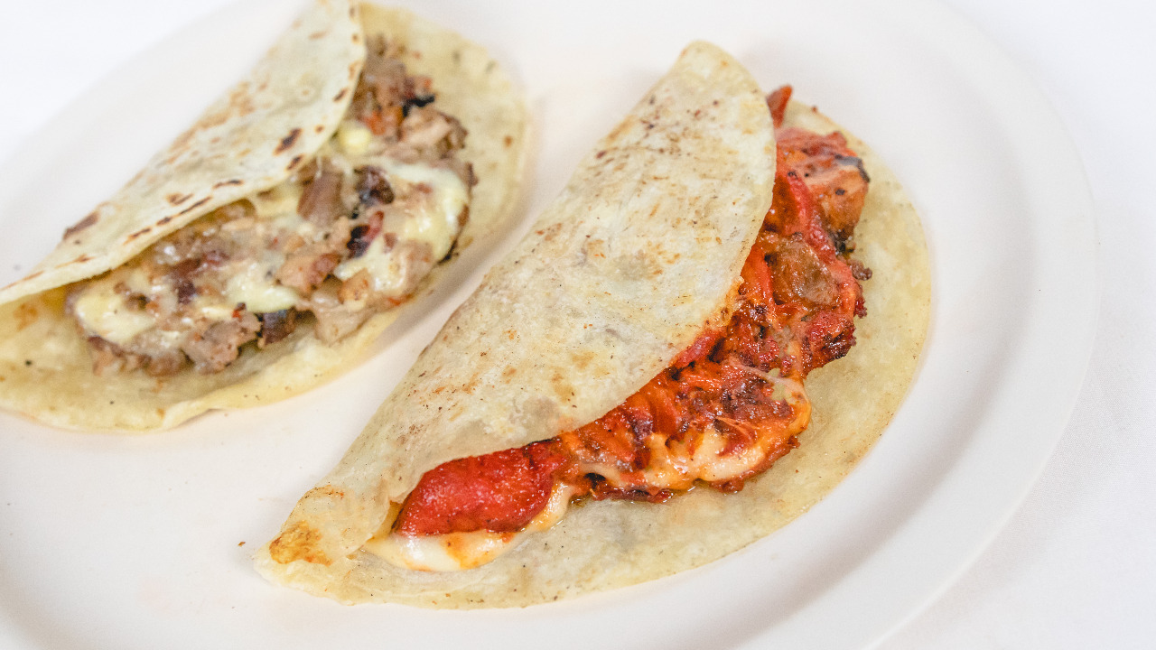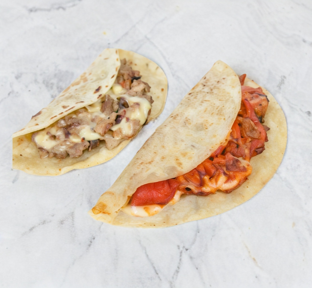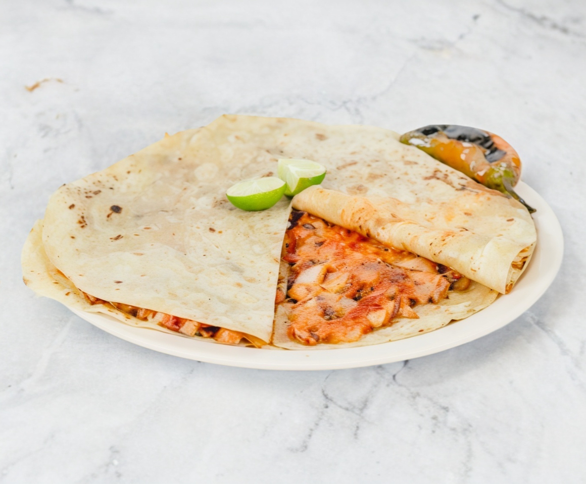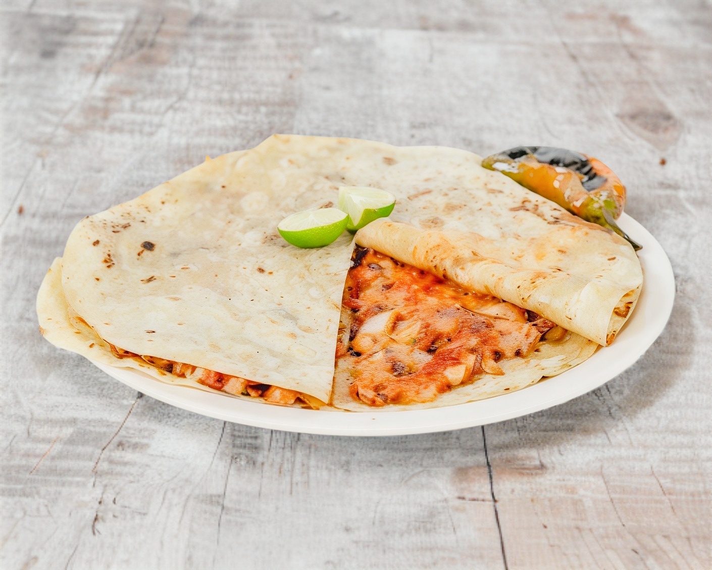 2 tortillas de harina grandes acompañadas de queso y carne a tu eleccion