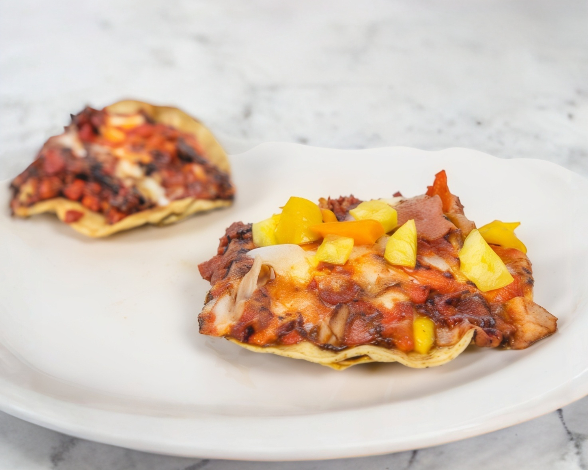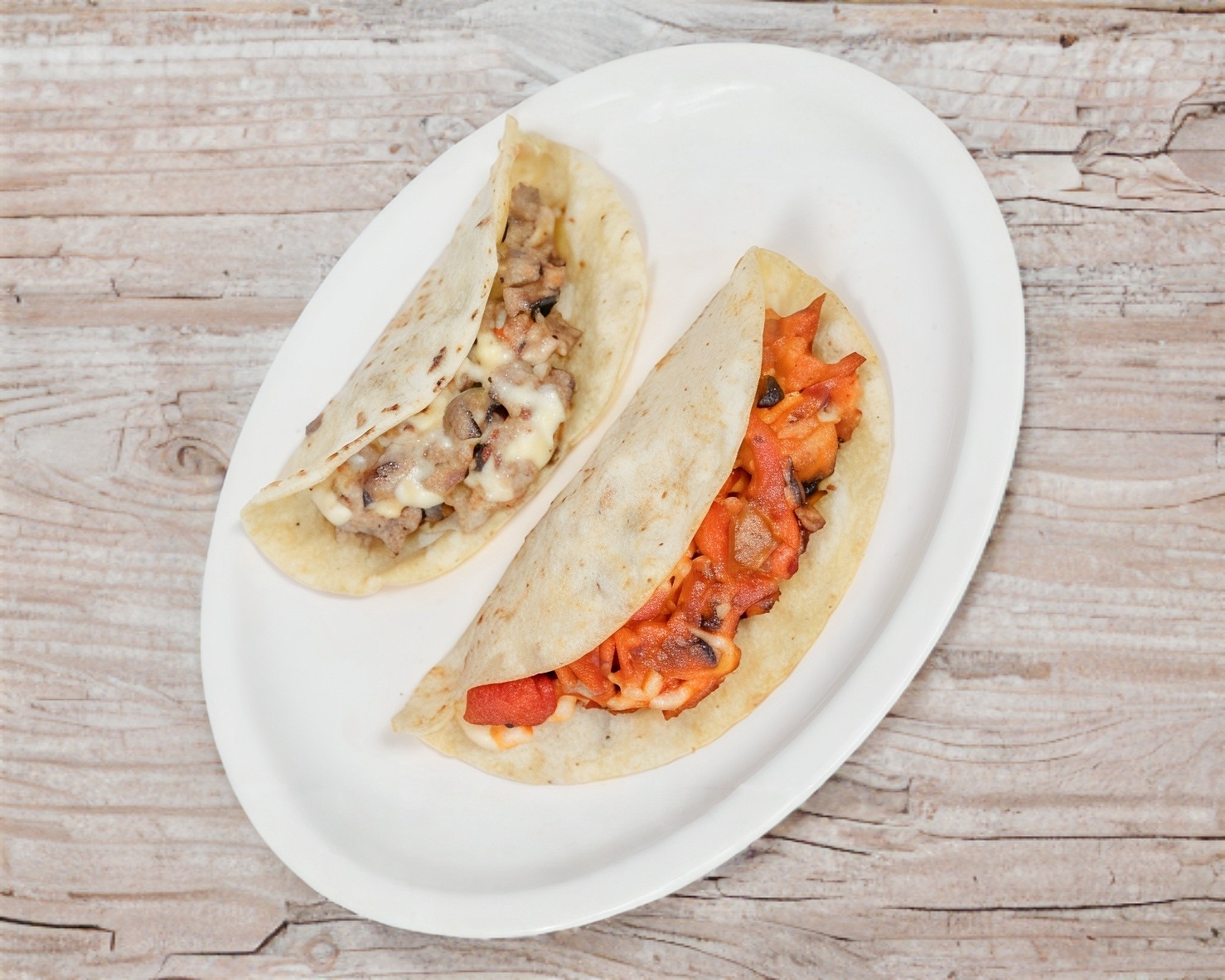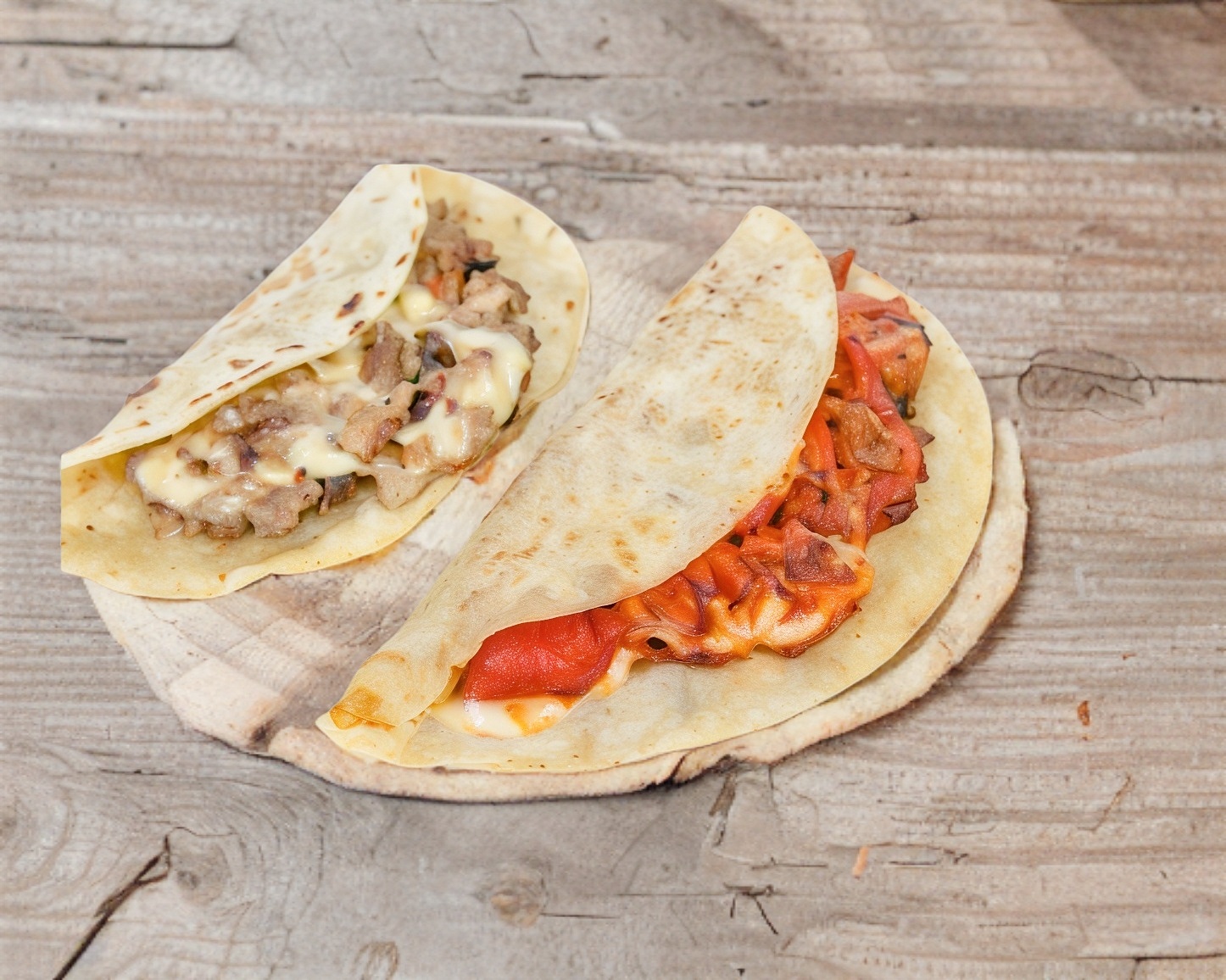 2 tortillas de harina grandes acompañadas de queso y carne a elegir