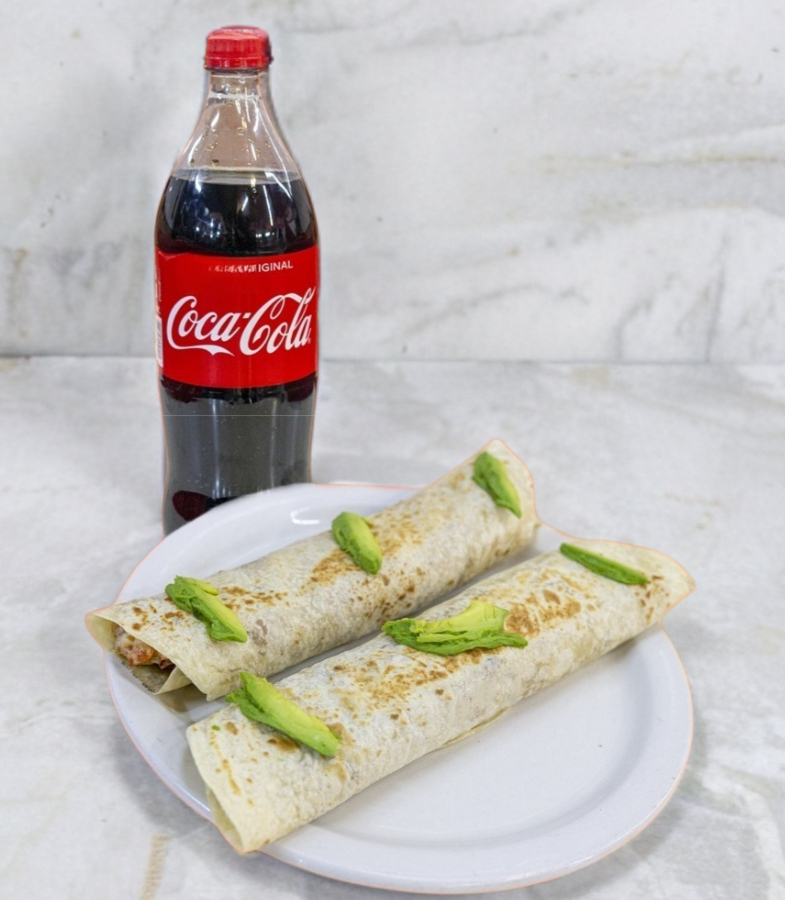 2 Megatacos (bistec, pastor, machito o chorizo). Incluye refresco de 1.5 lts. que puede variar según disponibilidad.