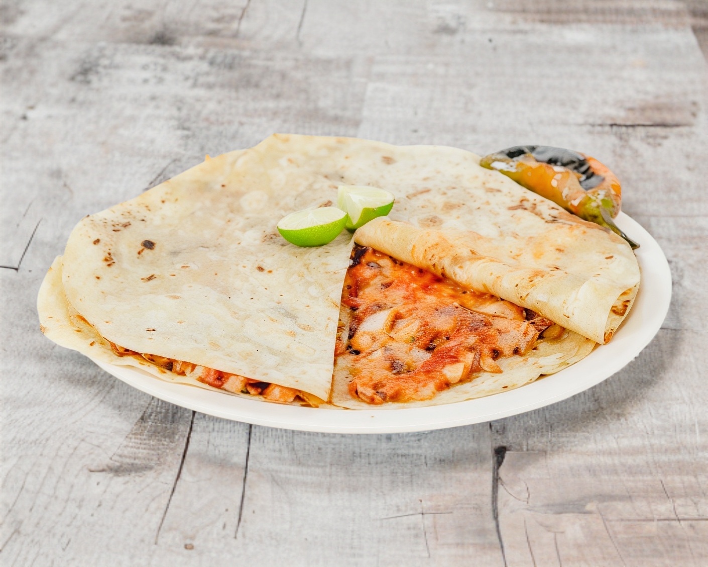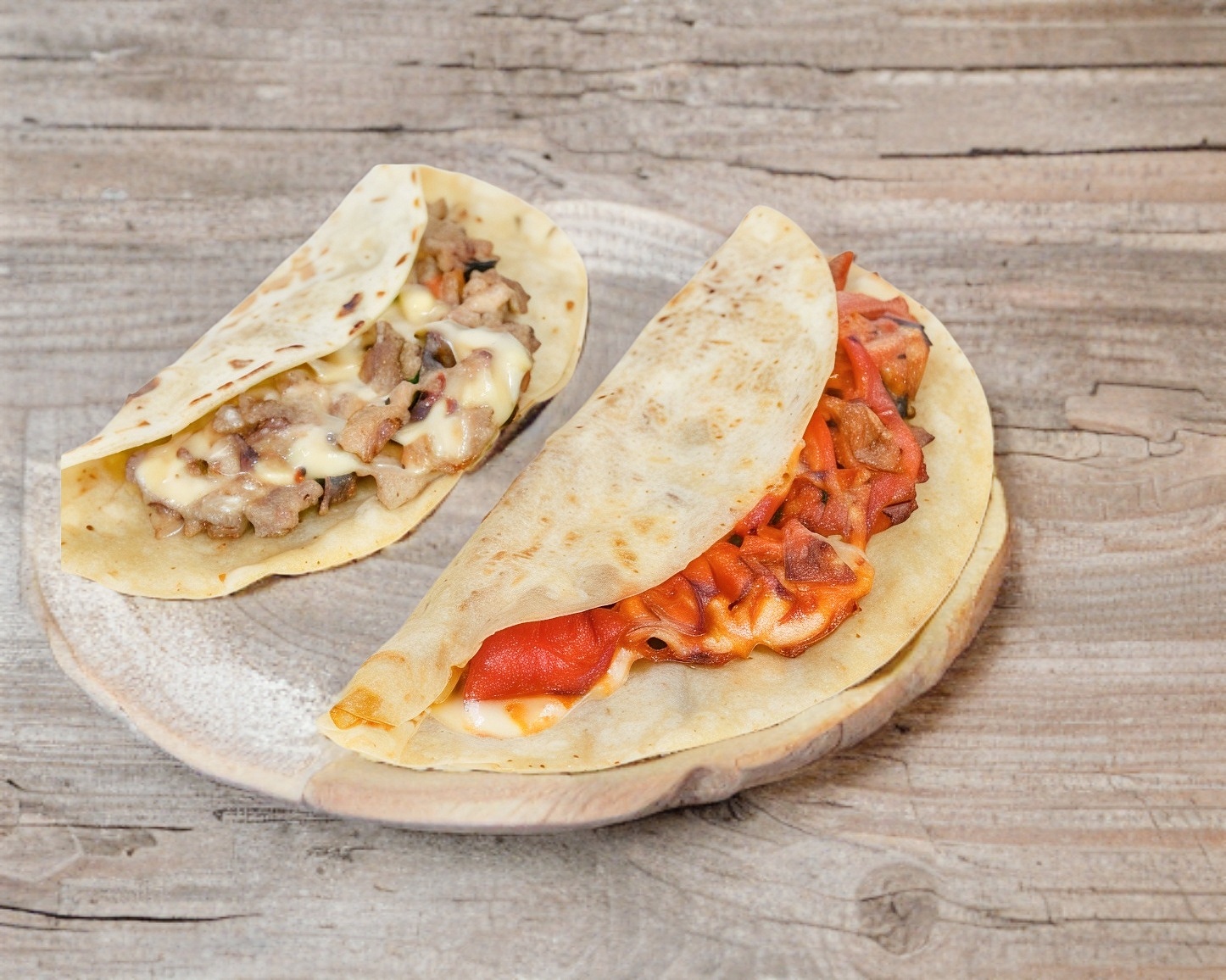 2 tortillas de harina grandes acompañadas de queso y carne a elegir